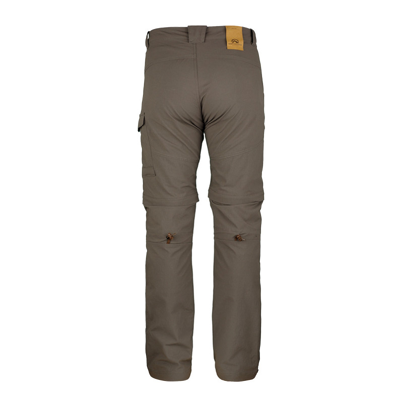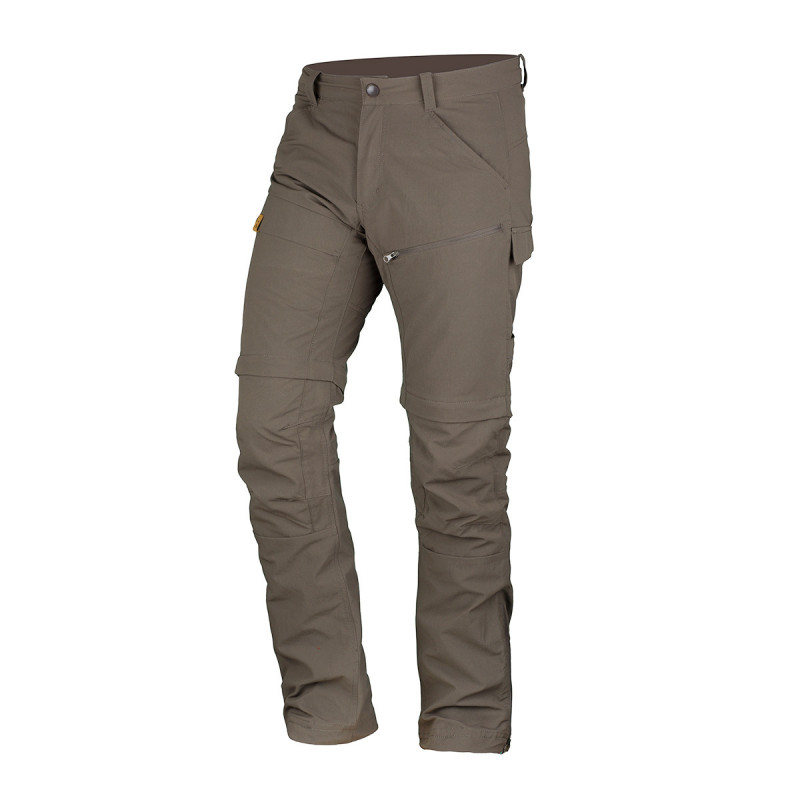 Είναι ελαφρύ και πολυλειτουργικό παντελόνι, λειτουργικό σορτς με πρακτικές γκέτες. Κατασκευασμένο από λεπτό και εύκαμπτο πολυαμίδιο, το οποίο είναι γνωστό όχι μόνο για την αντοχή του, αλλά και για την αναπνοή και τη μη απορροφητικότητα του. Η επιφάνεια επεξεργάζεται επιπρόσθετα με ένα υδρόφοβο στρώμα που αντιστέκεται στην εξωτερική υγρασία. Μεταμορφώσαμε την εμπειρία και τον ενθουσιασμό μας σε αυτό το εκπληκτικό πολυλειτουργικό παντελόνι 2 σε 1. Ολόσωμο μακρύ παντελόνι με ρυθμιζόμενη άκρη με φερμουάρ και κρυφό γάντζο συνδέεται σταθερά με το παπούτσι. Αν αποσυμπιέσετε μερικώς, θα αυξήσετε τον αερισμό. Και ξετυλίγοντας εντελώς το φερμουάρ παίρνετε σορτς για τις ζεστές μέρες και μπορείτε να χρησιμοποιήσετε το κάτω μέρος ως ρυθμιζόμενες γκέτες που προστατεύουν από τη βλάστηση ή τα έντομα. Οι εξελιγμένες τσέπες στους μηρούς αποθηκεύουν χάρτη, έγγραφα ή κουτί Survival. Προσθέσαμε και ειδικό πλαϊνό φορέα για τσεκούρι ή μαχαίρι. Πες μου, τι άλλο τους λείπει για μια περιπέτεια μακριά από τον πολιτισμό;