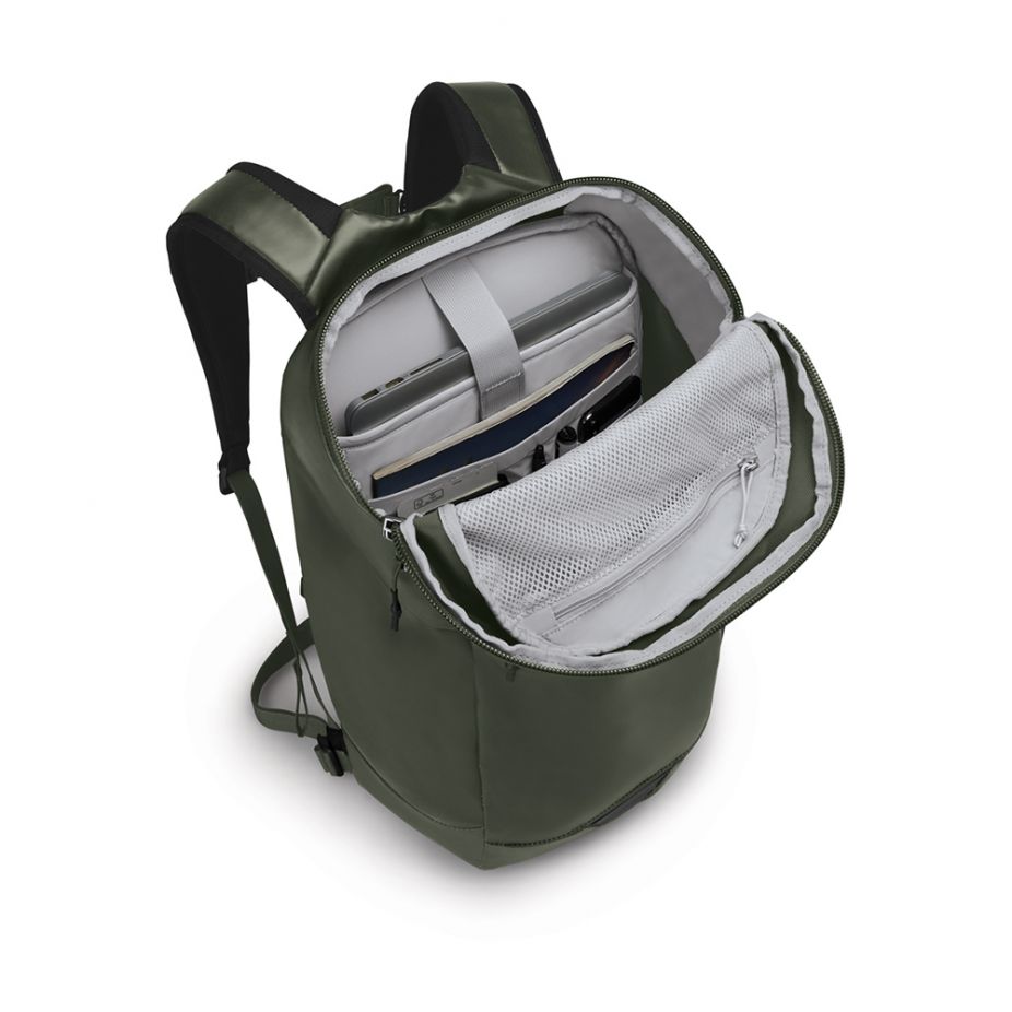Σχεδιάσαμε το Transporter® Small Zip Top με αδιάβροχο ύφασμα για να προστατεύει όλα τα καθημερινά απαραίτητα. Το καπάκι σε στιλ κάδου προσφέρει γρήγορη πρόσβαση στο κύριο διαμέρισμα. Στο εσωτερικό, ένα εσωτερικό μανίκι εγγράφων και τσέπες βοηθούν στην οργάνωση του εξοπλισμού σας. Διαθέτει διπλές πλαϊνές τσέπες για μπουκάλια νερού και πλευρικό μανίκι με φερμουάρ που χωράει φορητό υπολογιστή ή tablet 13 ιντσών. Αυτή η συσκευασία είναι βιώσιμη από ανακυκλωμένα υλικά εγκεκριμένα από το bluesign® με επεξεργασία DWR χωρίς PFC που απορροφά υγρασία.